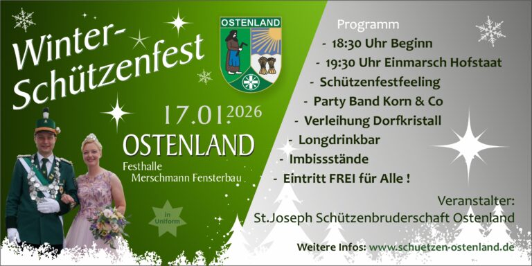 Am 17.01.2026 fand zum dritten Mal das Winterschützenfest unseres Schützenvereins in der Halle der Firma Merschmann Fensterbau statt. Zahlreiche Gäste folgten der Einladung, sodass die Halle gut gefüllt war und von Beginn an eine hervorragende Stimmung herrschte. Mit viel Engagement und Einsatz wurde die Halle im Vorfeld festlich hergerichtet und…