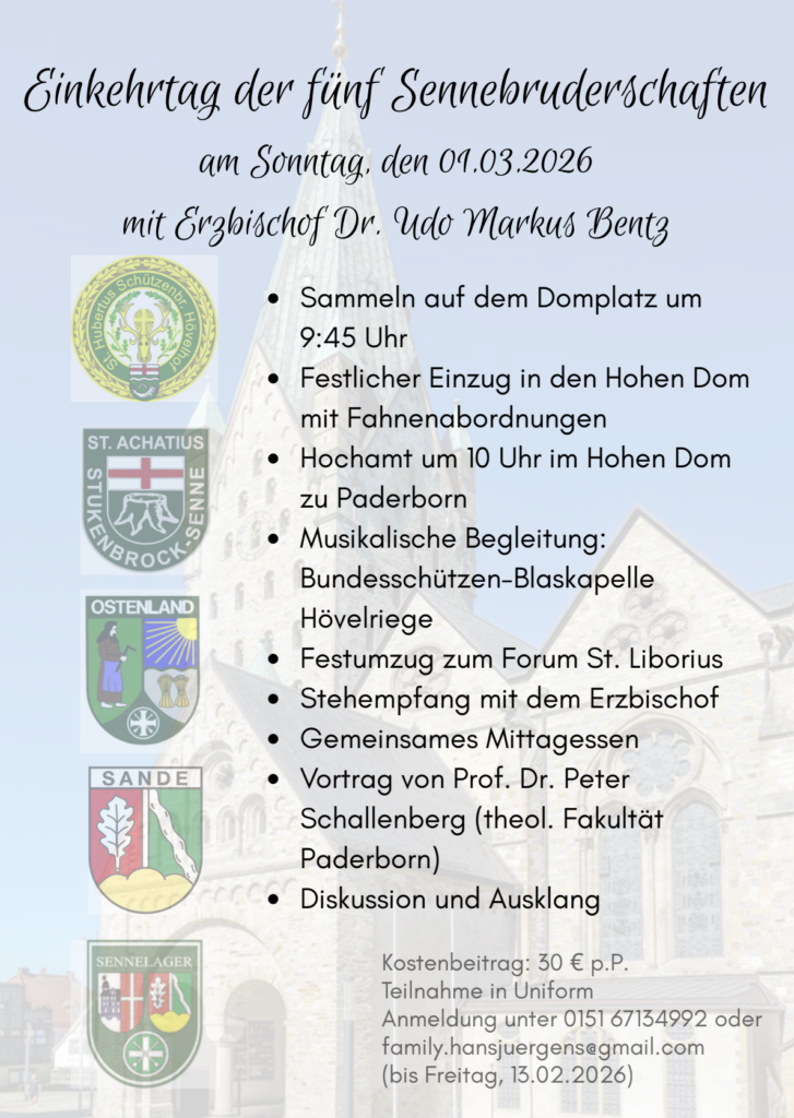 Gern möchten wir einmal aufmerksam machen auf die Einladung zum Einkehrtag der Sennebruderschaften, am Sonntag 01. März. 2026.